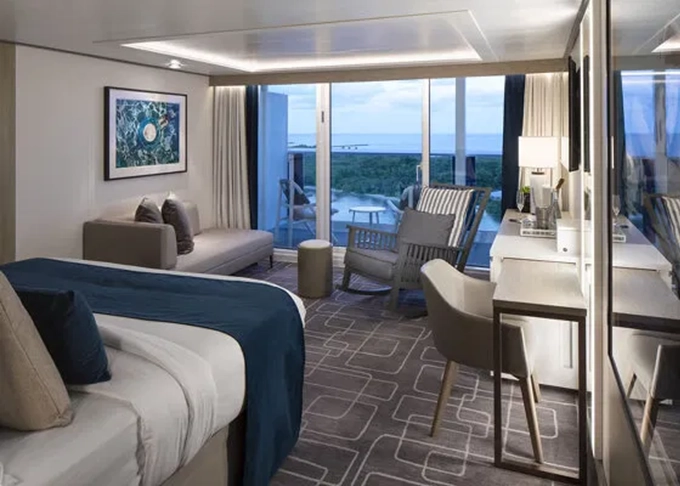 CS - Celebrity Suite 37 m² + balkón 9 m². 11/12. paluba. Max 4 osoby. Výhody Suite Retreat. 14 456 € 3 614 € za osobu