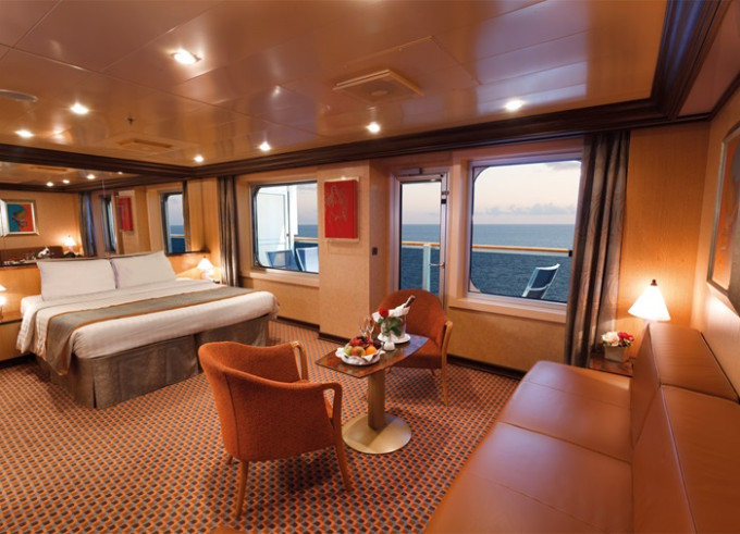 | S - Suite s balkónom 26 m² + balkón 6 m². 7. a 9. paluba. Max 2-3 osoby. Cenový model All Inclusive. Výhody Suite. | 8 495 € 1 699 € za osobu |