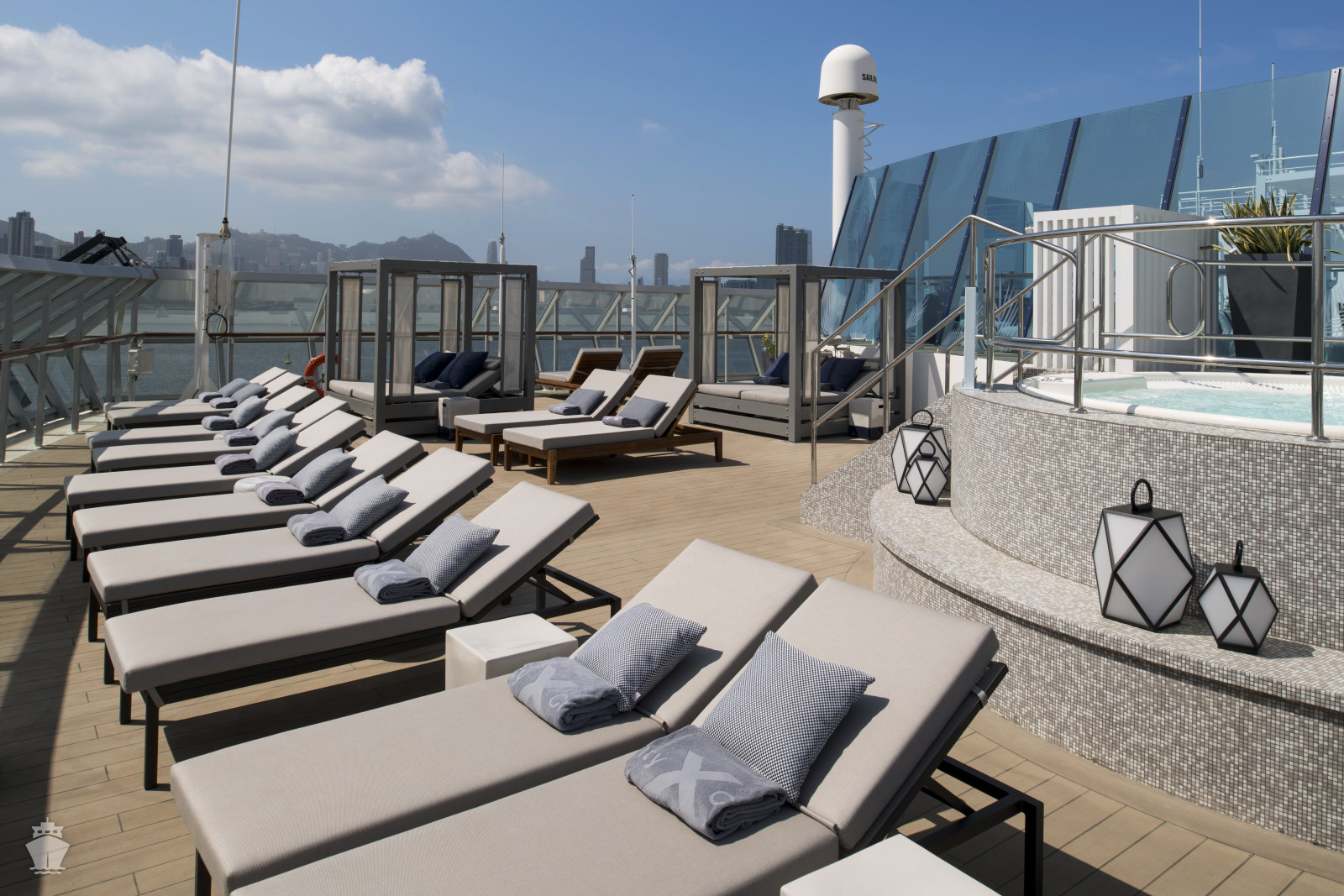 - Kajuty sú umiestnené v blízkosti lodného Spa. K ich vybaveniu patrí posilnený systém vzdušnej filtrácie, posteľ Queen-Size (v kategóriách Edge King-Size), veľké zasúvacie sklenené dvere, exkluzívne posteľné prádlo eXhale®, veľkorysé skladovacie priestory.