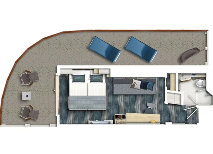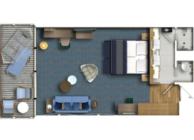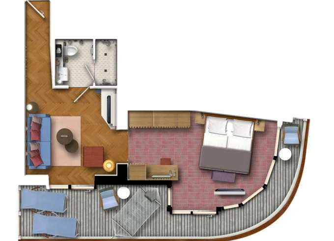 | SUSO - Übersee Suite 40 m² + balkón 9 m² s ležadlami a hojdacou sieťou. 14. paluba. Max 4 osoby. Výhody Suite. | 8 247 € 2 749 € za osobu | ||