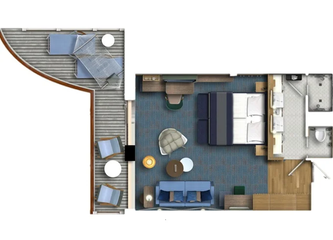 | SUSO - Übersee Suite 40 m² + balkón 9 m² s ležadlami a hojdacou sieťou. 14. paluba. Max 4 osoby. Výhody Suite. | 7 478 € 3 739 € za osobu | ||